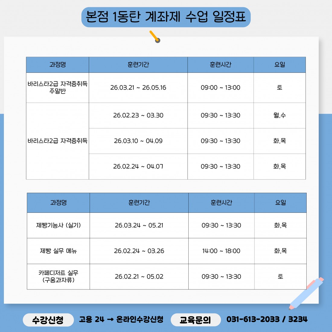 자세한 일정 및 수강 문의는 본원으로 연락주세요.