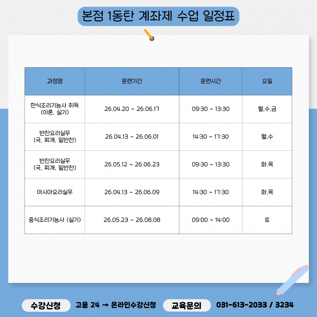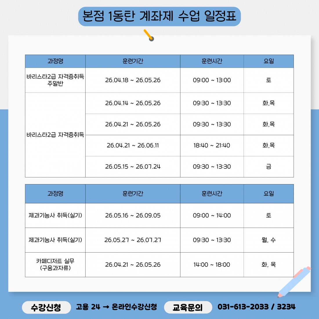 자세한 일정 및 수강 문의는 본원으로 연락주세요
