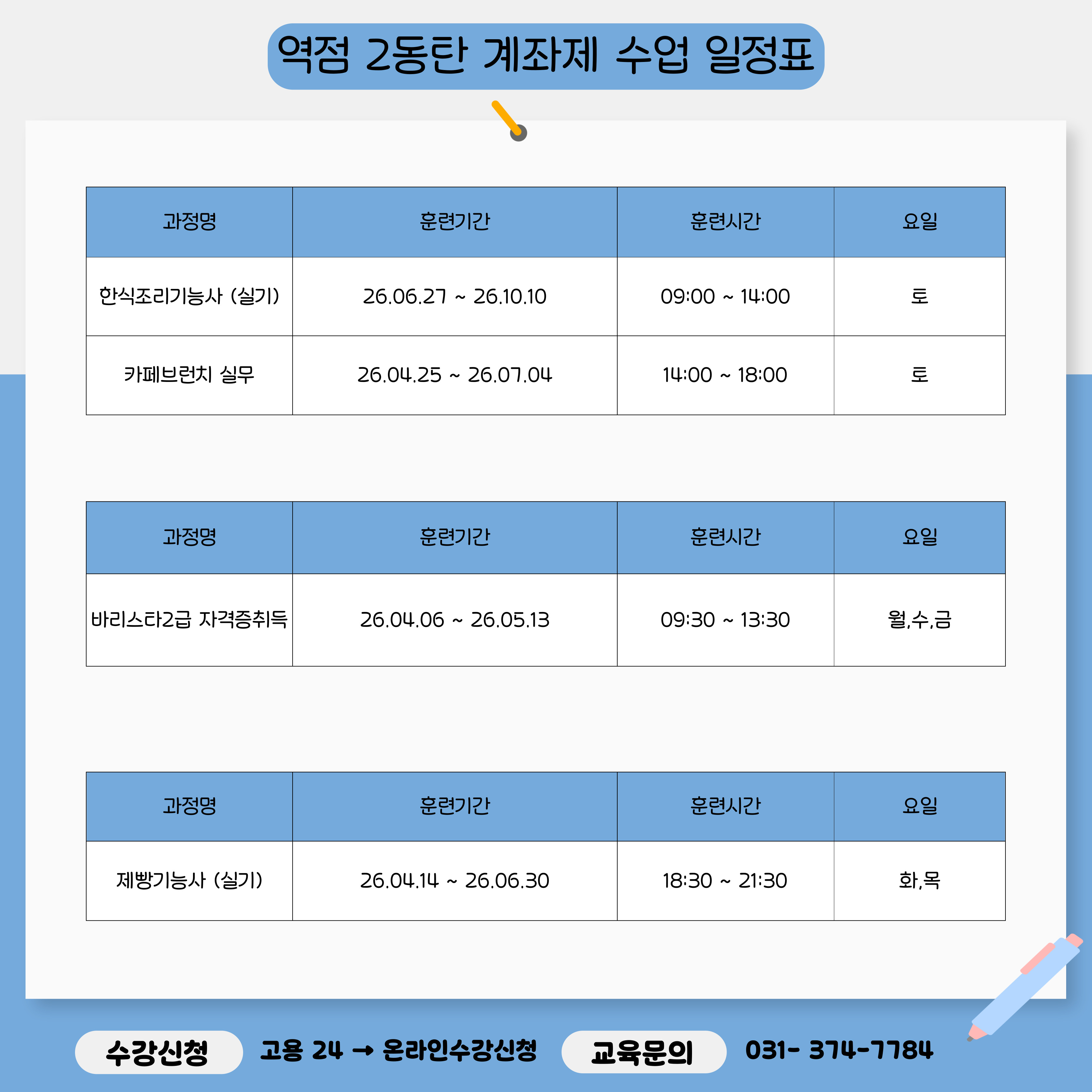 자세한 일정 및 수강 문의는 본원으로 연락주세요