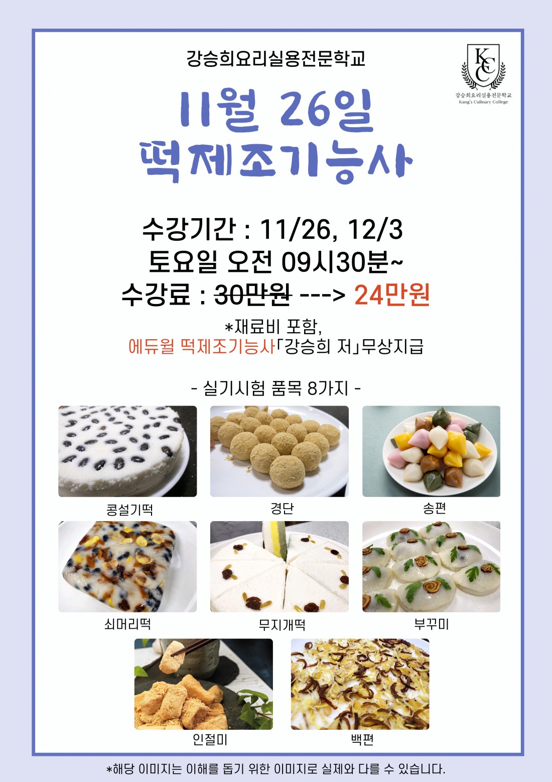 [모집중 / 일반반 ] 11월 떡제조기능사 특강