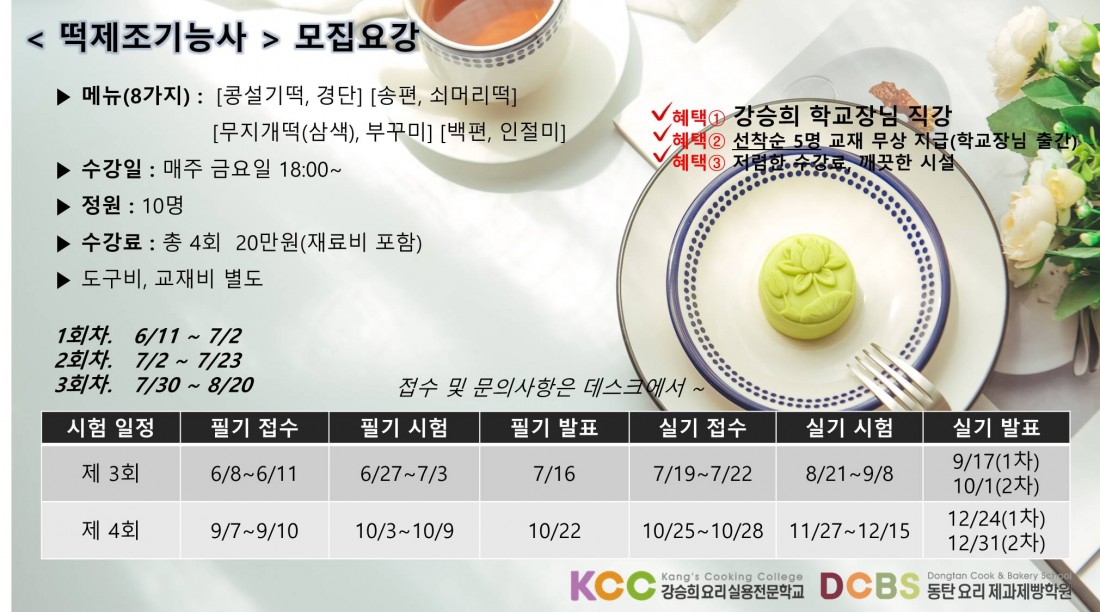 ◇ 한국산업인력공단 국가자격증 떡제조기능사 수업 오픈 소식 ◇