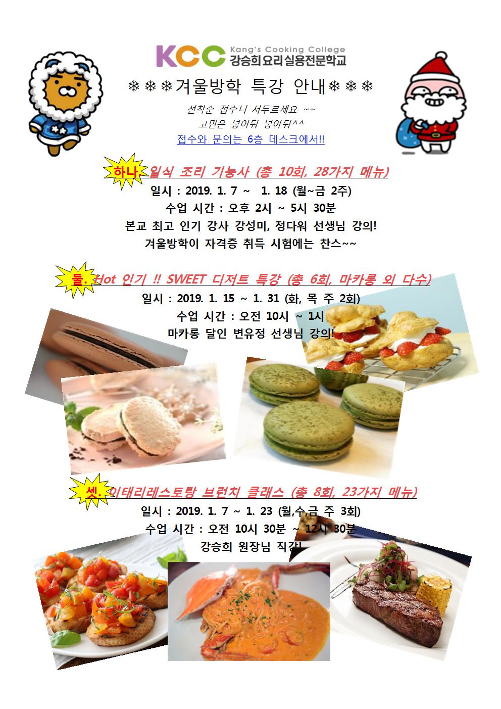 [개강] 겨울방학 특강 3가지 안내 (일식, 디저트, 브런치)