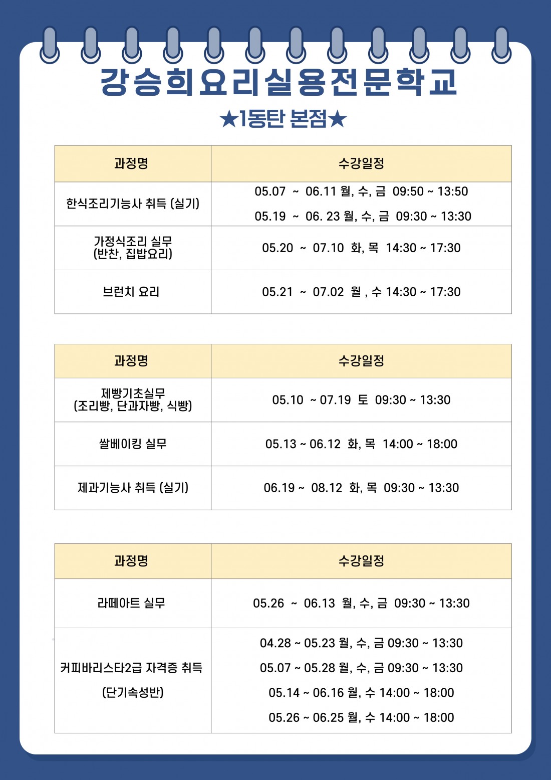 [1동탄 본점] 5~7 국비 개강일정