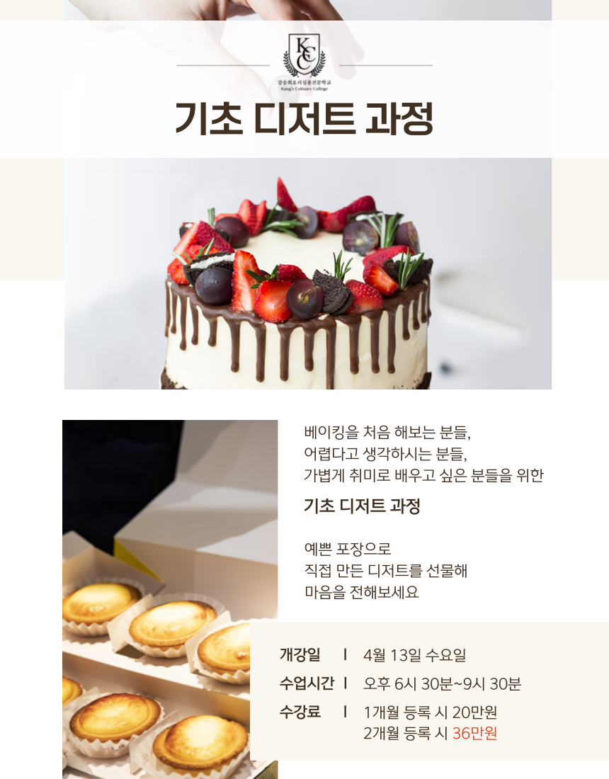2개월 (8회) 등록시 수강료 10% 할인!  36만원