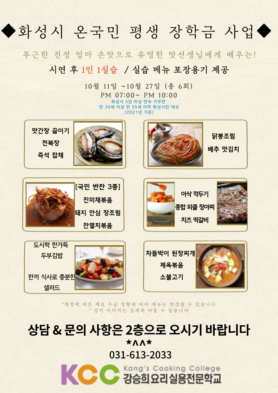 취미과정 (생활한식, 홈베이킹) OPEN !!