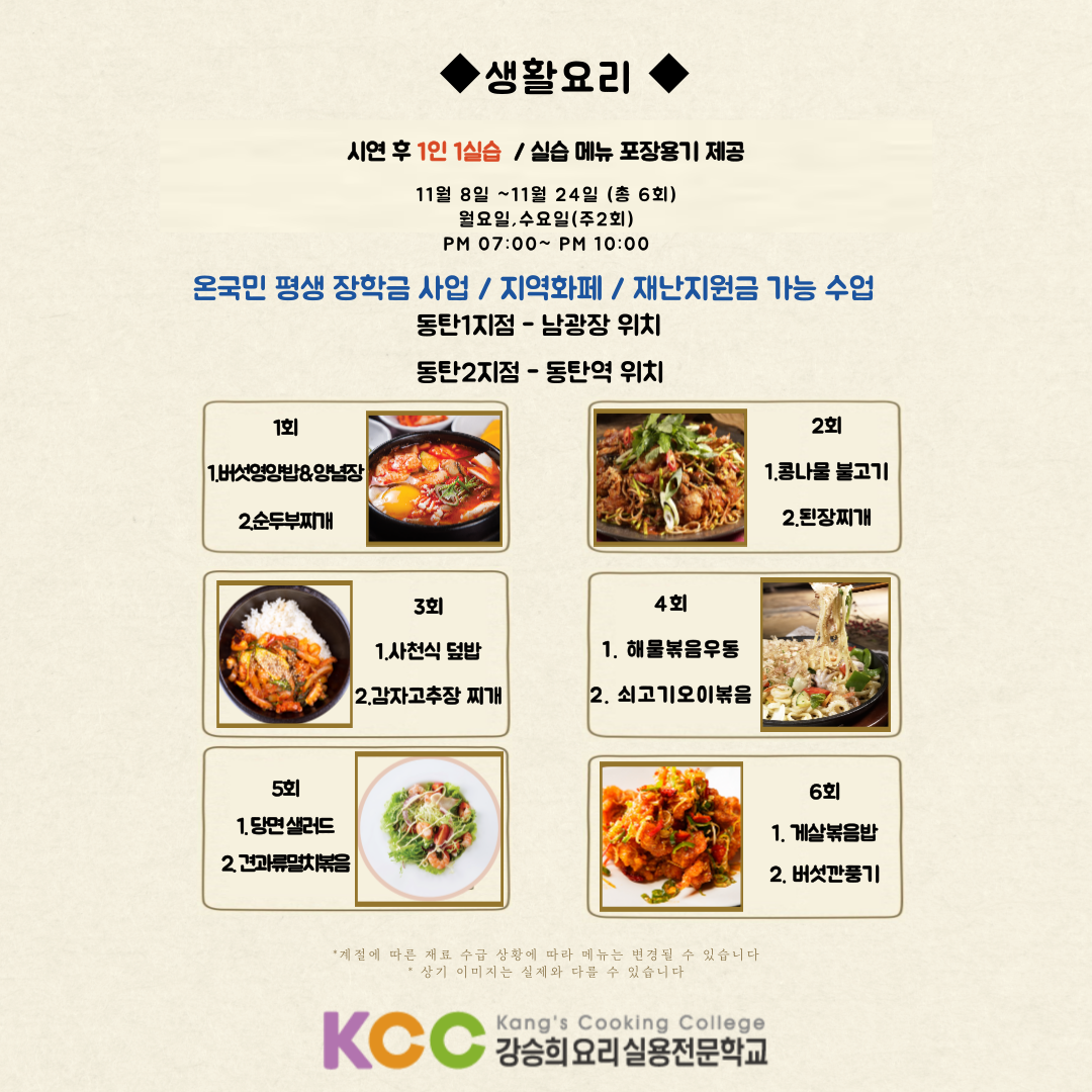 2차! [생활요리] 수업은 동탄 1지점-남광장 위치 , 동탄2지점-동탄역 위치