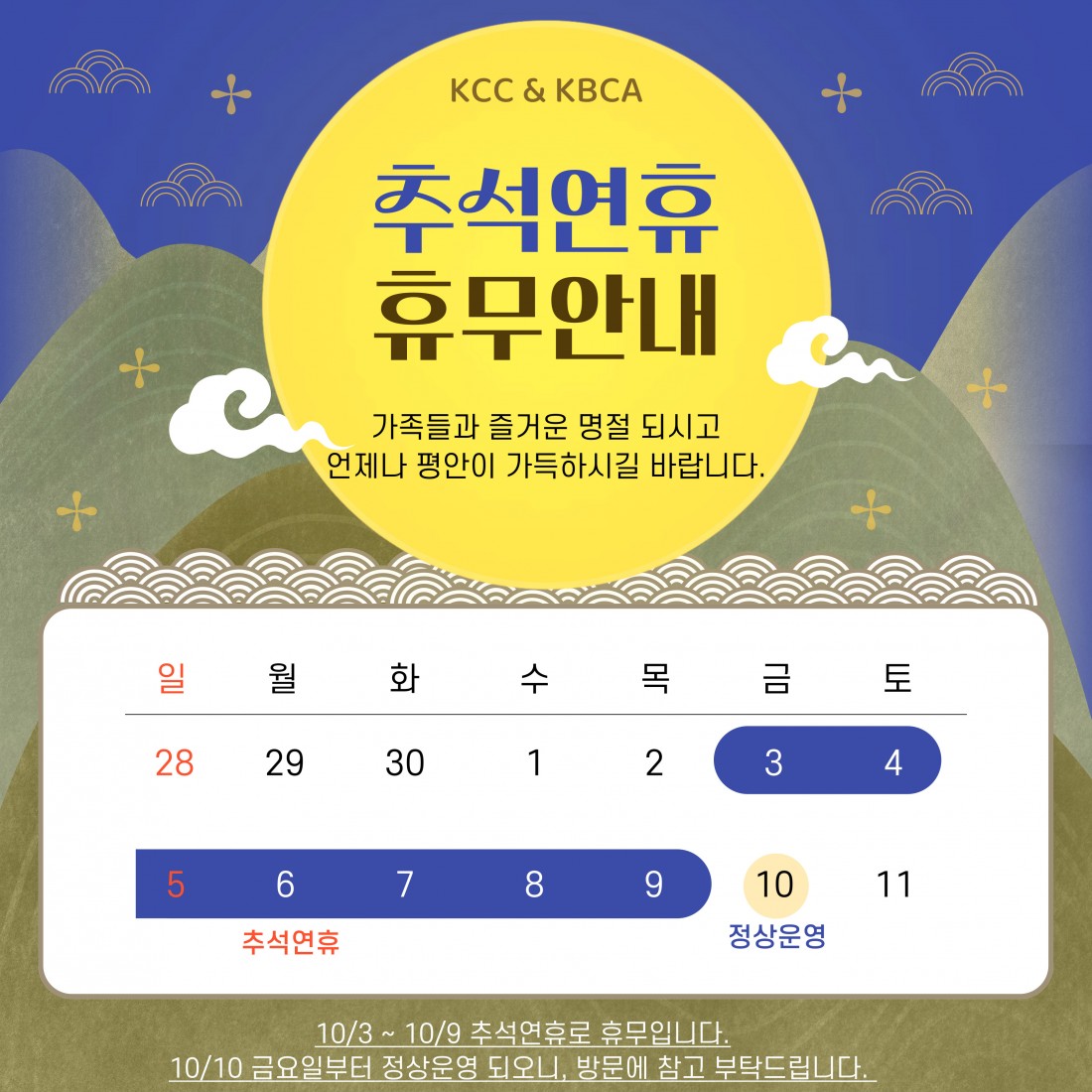 10/3 ~ 10/9 추석연휴로 휴무입니다.