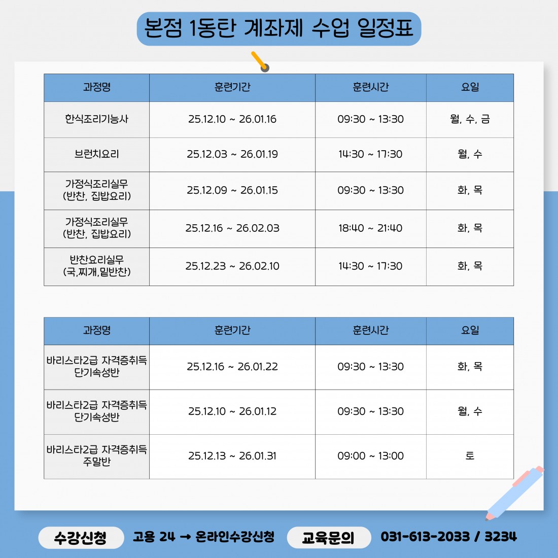 올해 등록하실 수 있는 2025년도 마지막 수업 일정만 따로 모아 정리해두었으니