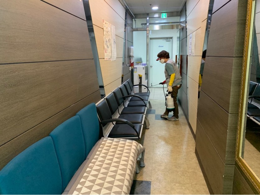 강의실과 사람들이 많이 접촉하는 부분에 소독과 방역작업을 철저히 진행하고 있습니다.