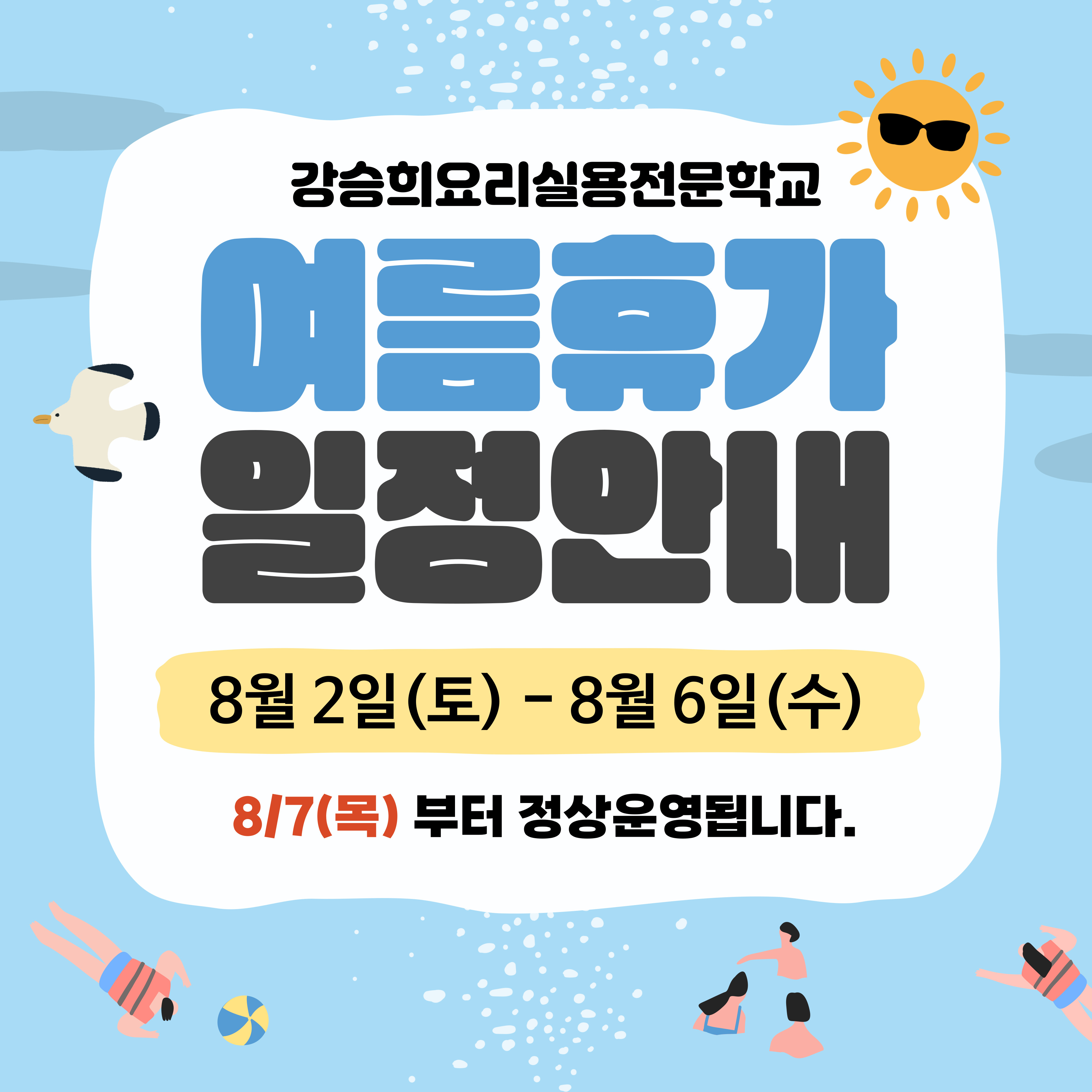 8월 7일(목)부터 정상 운영되오니 참고 부탁드립니다.