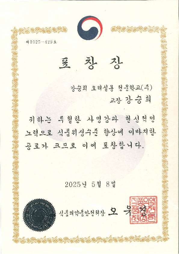 앞으로도 안전하고 건강한 식문화를 선도하는 교육기관으로서 최선을 다하겠습니다.❤️