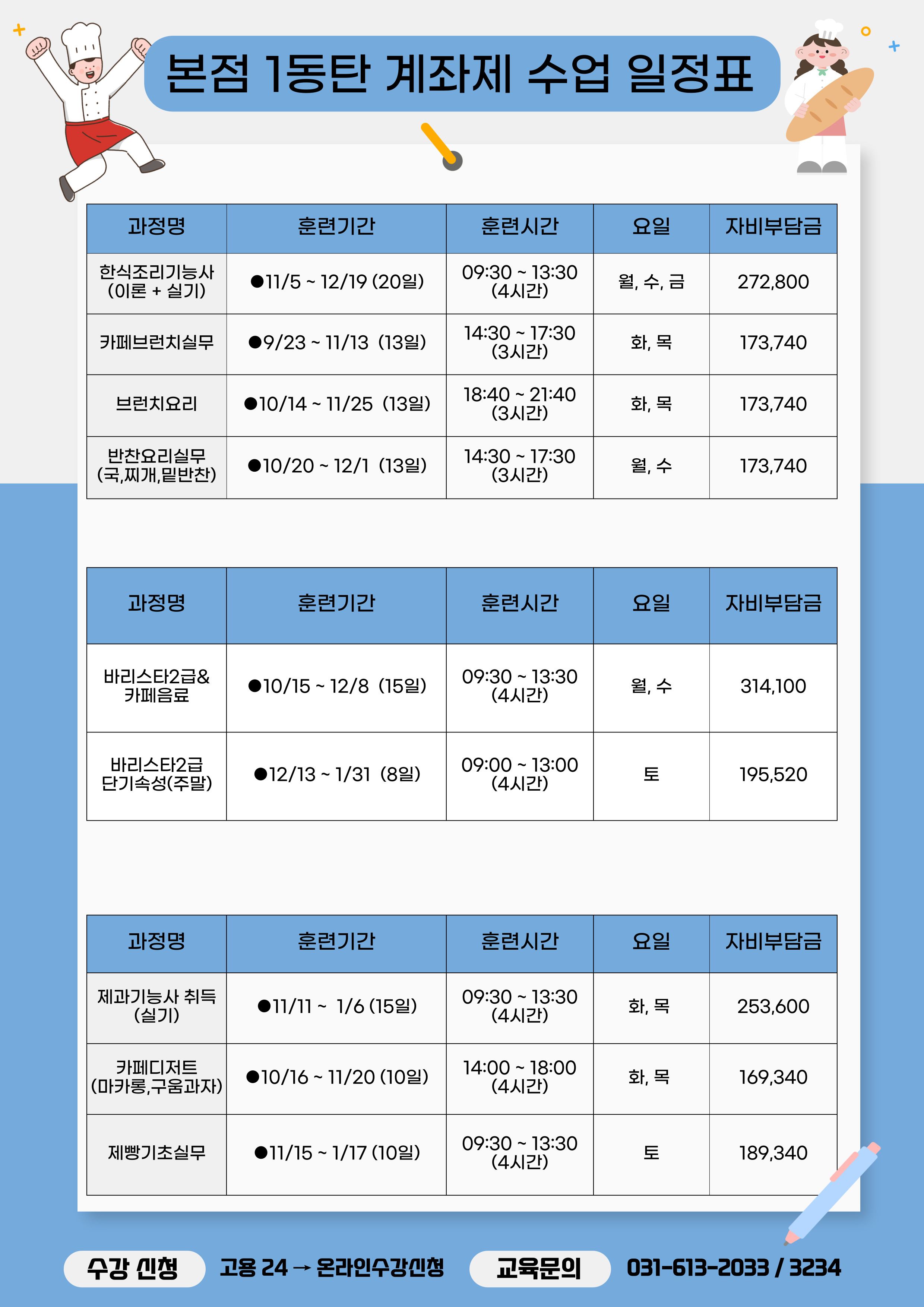 자세한 일정 및 수강 문의는 본원으로 연락주세요 !