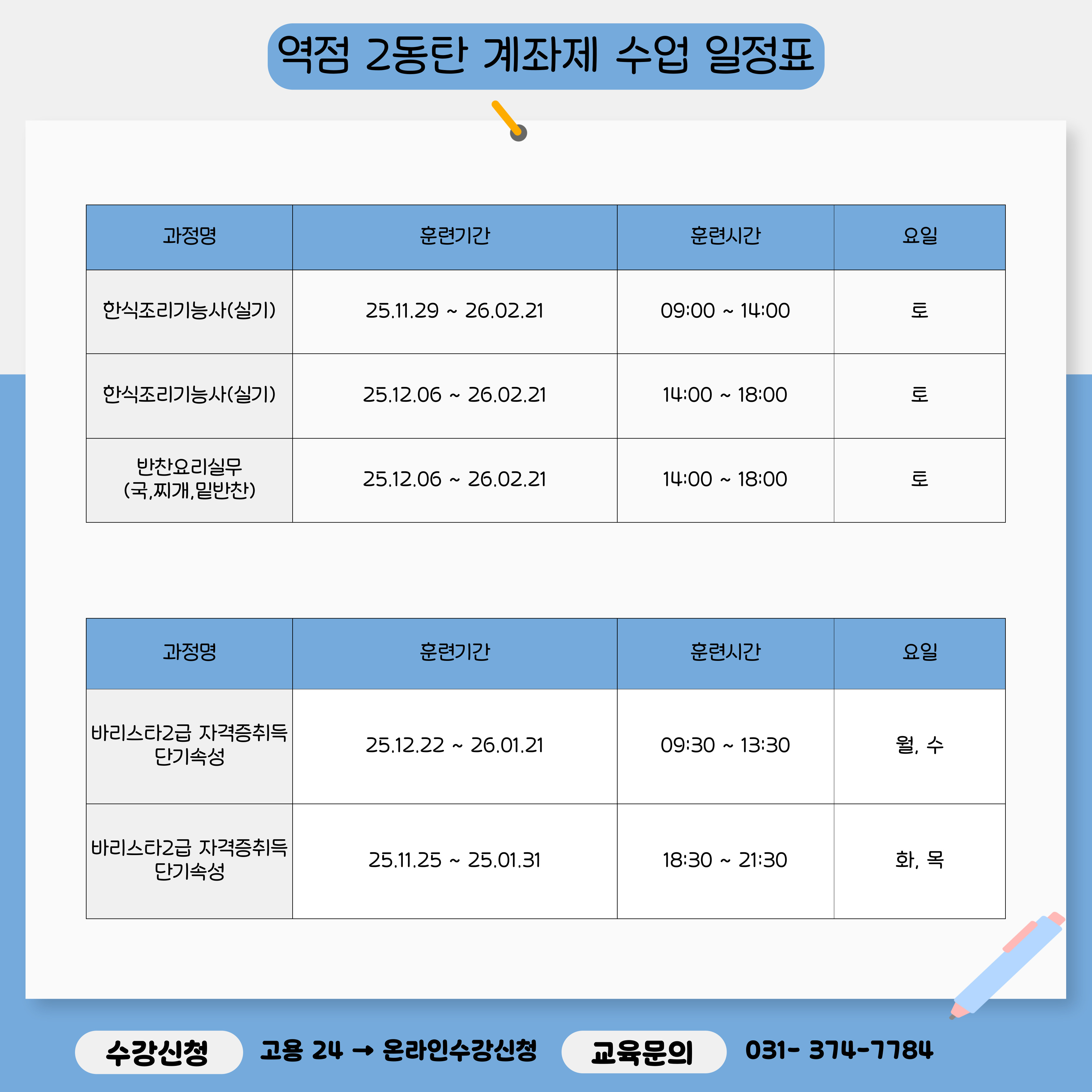 올해 등록하실 수 있는 2025년도 마지막 수업 일정만 따로 모아 정리해두었으니