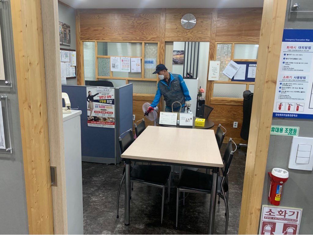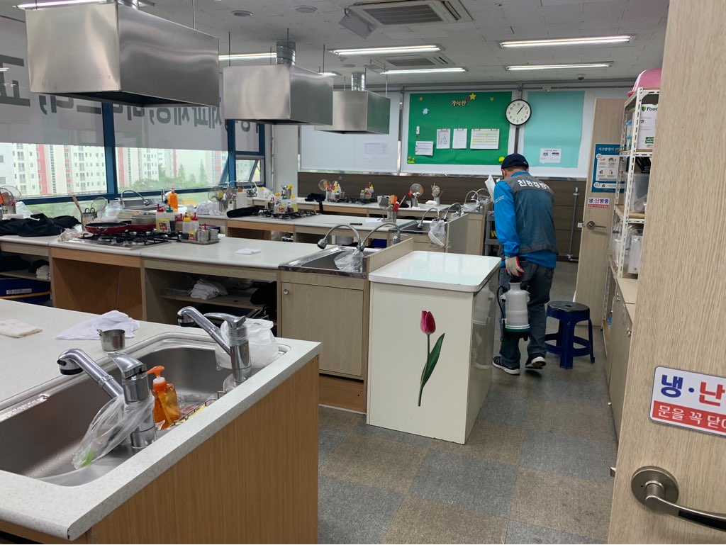 강의실과 사람들이 많이 접촉하는 부분에 소독과 방역작업을 철저히 진행하고 있습니다.