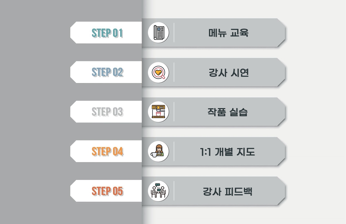 • 바리스타 자격증 메뉴 실습을 통한 직업능력을 개발합니다.