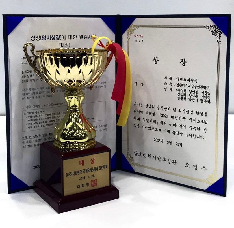 2025년 5월 23일부터 25일까지 서울 aT센터에서 열린 제 17회 대한민국 국제요리 & 제과대회에 참가한 모든 학생이 각 부문에서 수상의 영광을 안으며 놀라운 성과를 이루어냈습니다 !