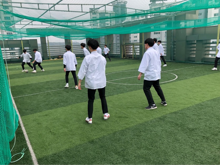 점심시간에 옥상에서 축구하는 학생들입니다^^