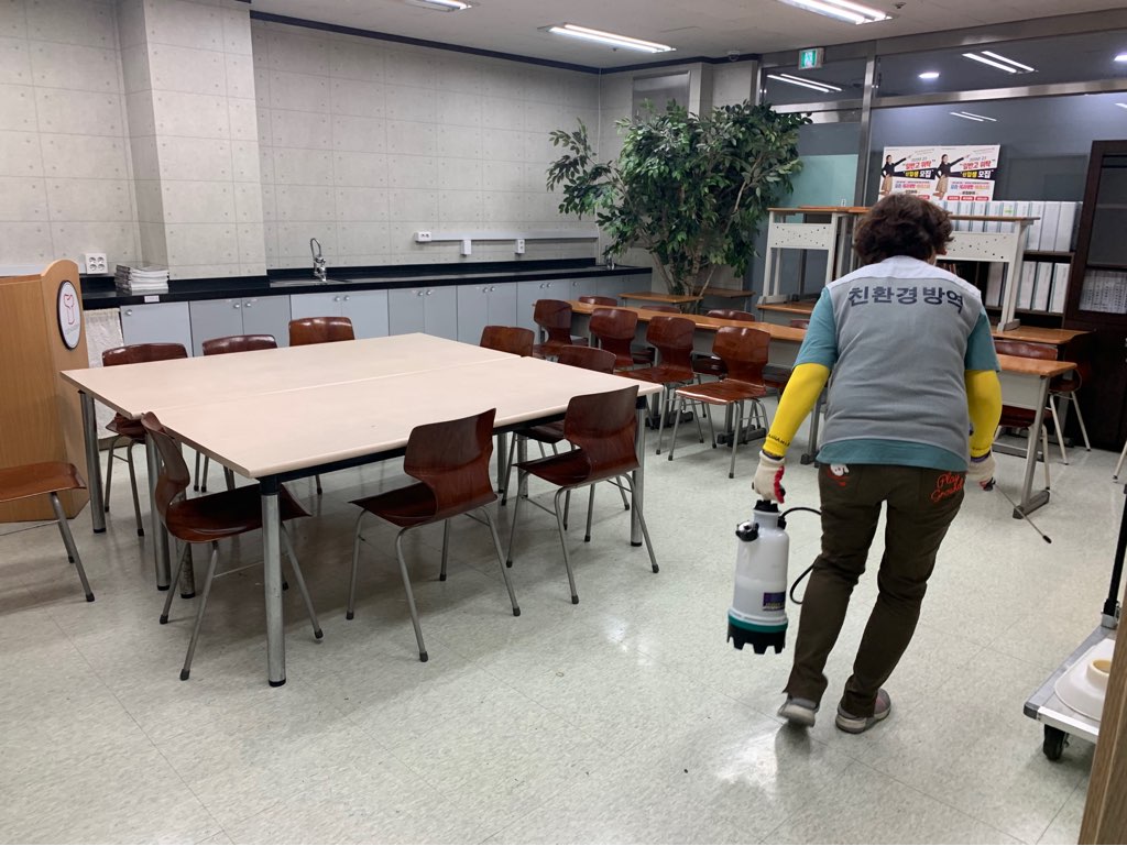 강의실과 사람들이 많이 접촉하는 부분에 소독과 방역작업을 철저히 진행하고 있습니다.