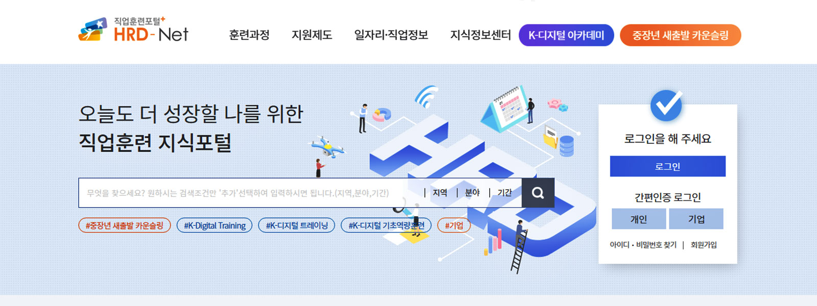 1. 고용노동부 HRD-net 에 접속하여 로그인합니다.